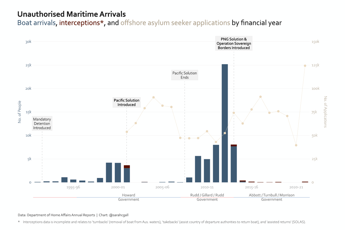 From the Howard Government’s Pacific Solution to the Rudd Government’s Papua New Guinea (PNG) Solution and the Abbott Government’s Operation Sovereign Borders, Australia’s policies have evolved to a comprehensive strategy designed to deter unauthorised maritime arrivals.
