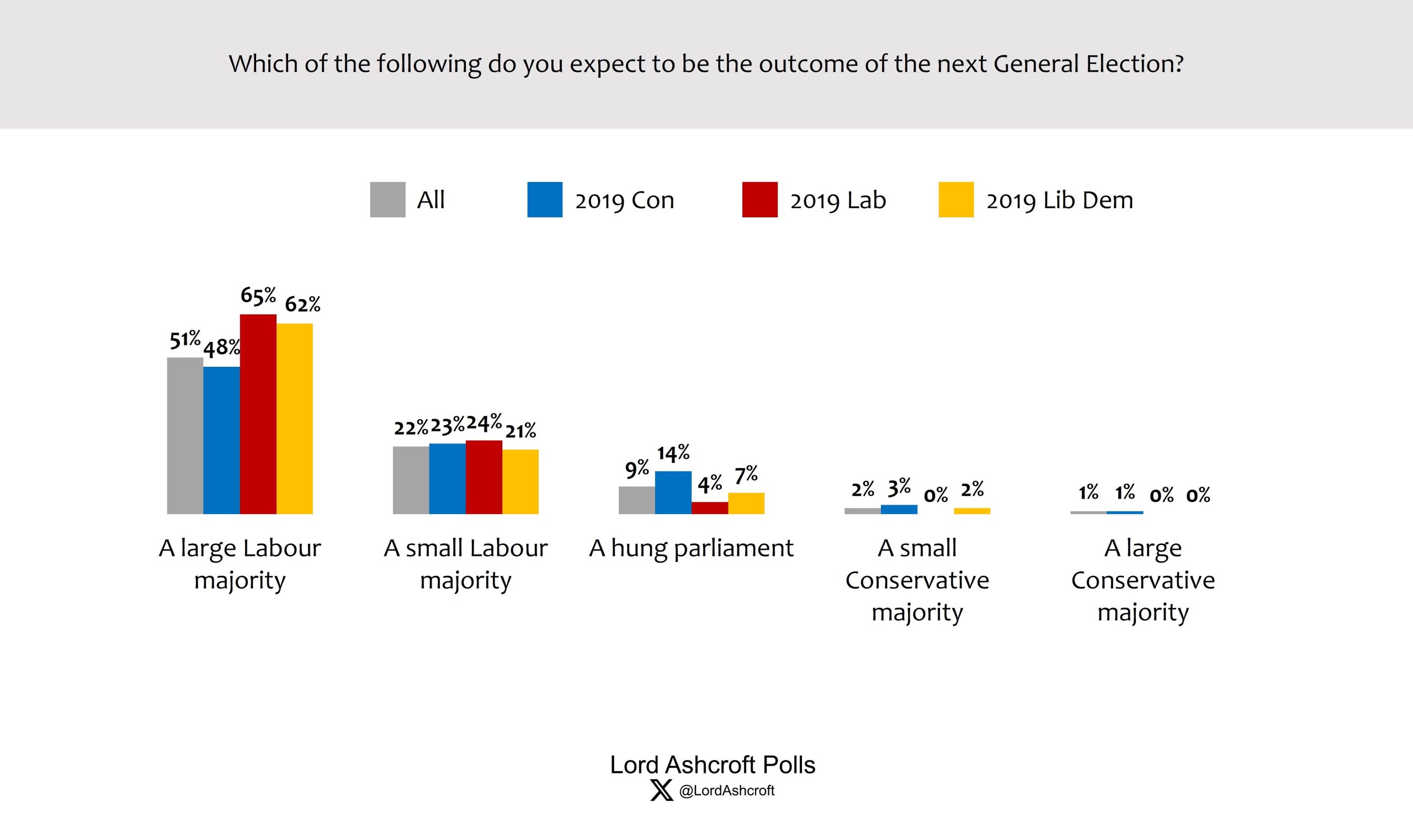 More than half (51 per cent) of all voters said they now expected the election to produce a large Labour majority – up from 35 per cent in the first week of the campaign. Nearly three quarters expected a Labour majority of some kind.