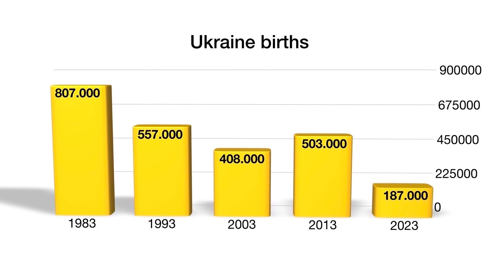 In 1983 there were 807,000 babies born in Ukraine but in 2023, a year into the all-out war, the number was 187,000 – a staggering drop of 77 percent. Even before the Russian invasion of February 2022, Ukraine had the fastest-shrinking population in the world due to a low birth rate, decades of emigration, and labour outflow.