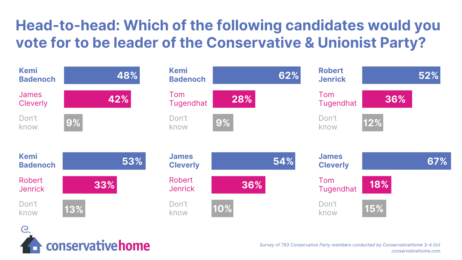 Last week, Jenrick led Cleverly by 51 per cent to 37 per cent; now it’s reversed, 54 per cent to 36 per cent.