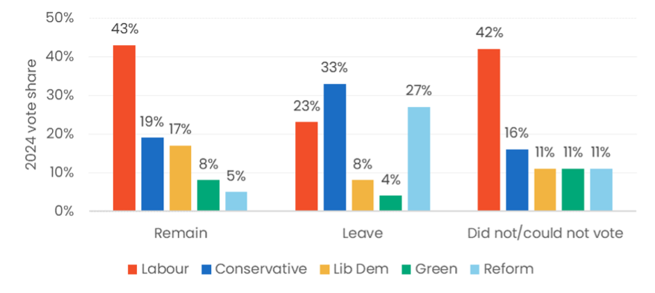 2024 vote share of Leave, Remain, and Did not / could not vote