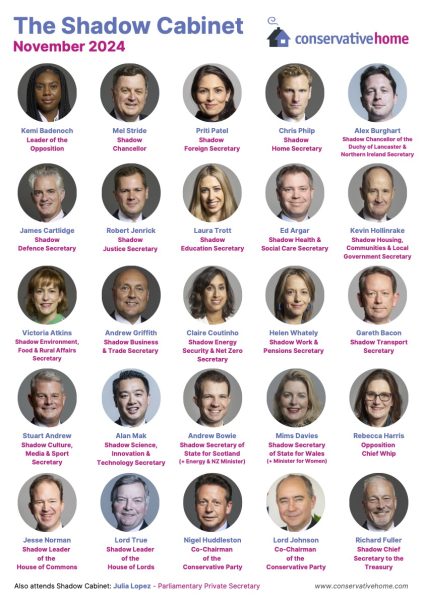 TUES 5th 11.59am Conservative Home has updated it’s Shadow Cabinet chart: