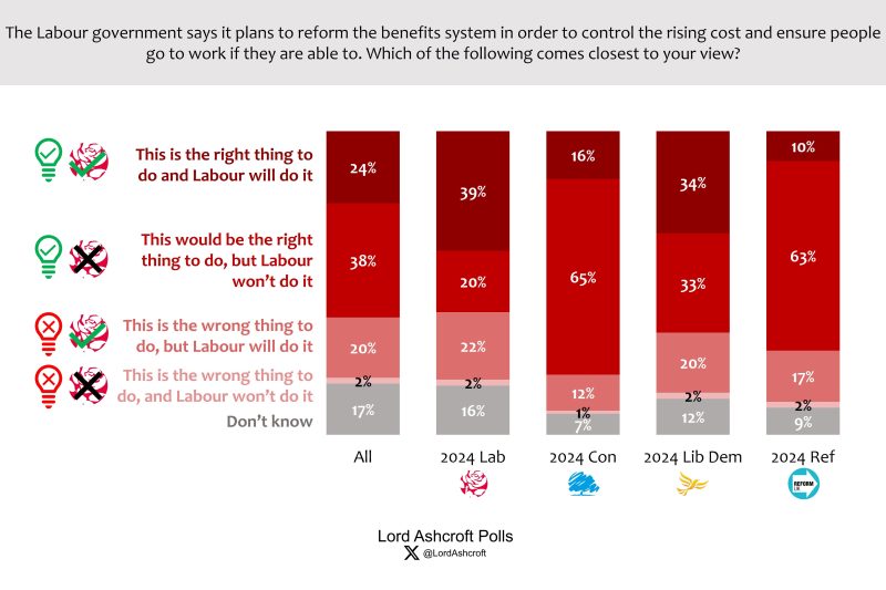 Most voters back the principle of welfare reform but doubt Labour will go through with it, according to my latest polling.