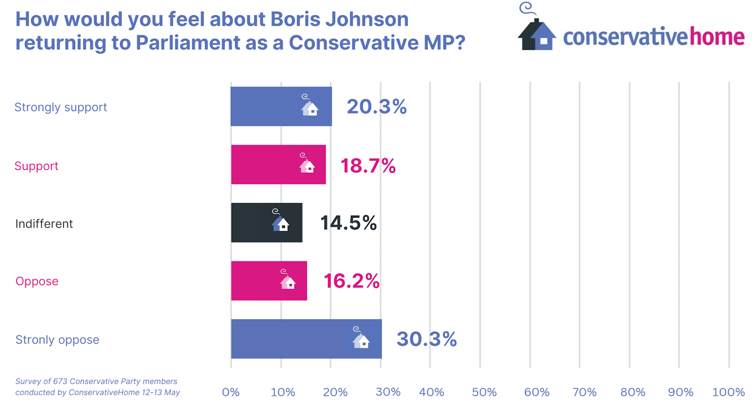 The bad news for Boris supporters is those who support him coming back (18.7 per cent) and those who’d strongly support it (20.3 percent) are outweighed by those who’d oppose (16.2 percent) and who’d strongly oppose (30.3 percent) by a margin of 7.5 per cent. However, that 14.5 per cent who are indifferent, either remain indifferent, or are persuadable one way or the other depending on events.