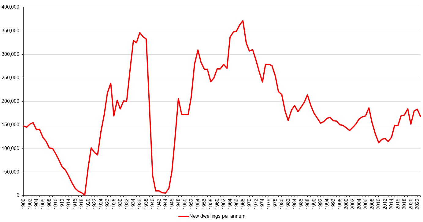 Chart 1 – housing construction in England and Wales, 1900-2023