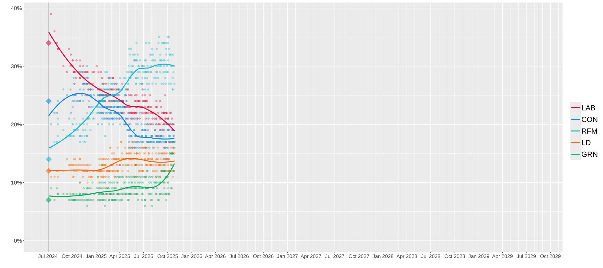 It is certainly better for the Tories that their polling has stabilised than had it continued on the sharp downward trajectory it was on until June – and given that the recent relationship between their polling and Reform UK’s stands out as clearly as Labour’s to the Greens’, Reform plateauing is likewise a good sign.